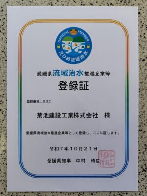 愛媛県で取り組まれている「流域治水推進企業」に当社も登録されました!